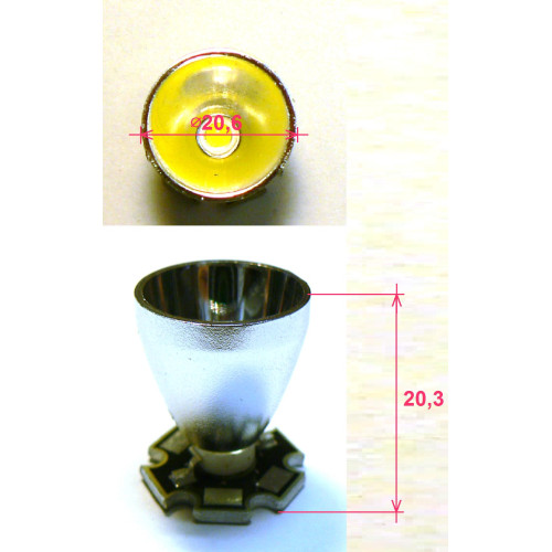 Reflektor pro přistávací světla, stříbrné ABS, bez optiky průměr 20,5mm, vhodné pro LED 5mm a LED 1W.