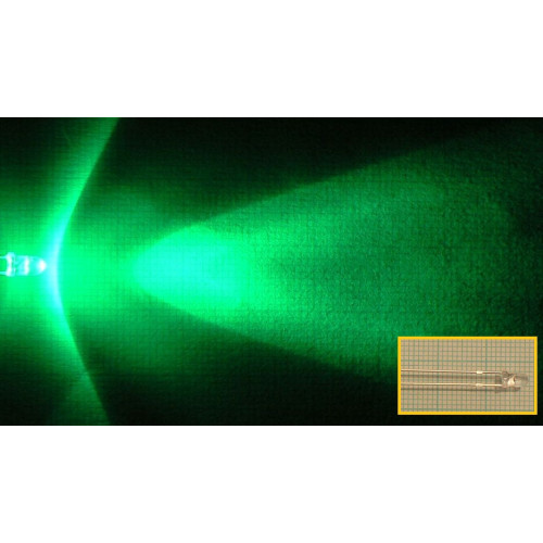 Zelená vysoce svítivá LED dioda 20 mA, 3mm. Čirá 525 mm - 6000 mcd - 30° - 3,3 V