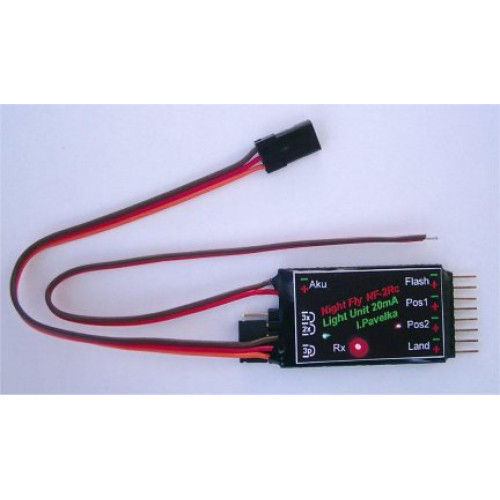 NF-2 RC je jednotka pro osvětlení Slow a ParkFly modelů pro létání v noci. Slouží k napájení barevných vysoce-svítivých LED (Light-Emitting Diode) s jmenovitým proudem 20mA. Obsahuje čtyři nezávislé proudově napájené výstupy, dva pro poziční světla (Pos1 a Pos2), jeden blikající pro záblesková světla (Flash) a jeden pro napájení přistávacích světel (Land).