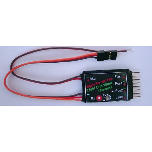 NF-1RC je jednotka pro osvětlení Slow a ParkFly modelů pro létání v noci. Slouží k napájení barevných vysoce-svítivých LED (Light-Emitting Diode) s jmenovitým proudem 20mA. Obsahuje čtyři nezávislé proudově napájené okruhy. Dva okruhy jsou trvale svítící pro napájení pozičních světel. Třetí okruh bliká se sekundovou frekvencí a je určen pro napájení antikolizních světel. Čtvrtý okruh je řízen z přijímače a je určen pro napájení přistávacích světel. Jeho řídící obvod je od obvodů osvětlení galvanicky oddělen optočlenem a je napájen z přijímače. Připojení k přijímači je pomocí konektoru typu Graupner, Hitec. Vestavěným trimrem lze nastavit polohu kniplu, kdy dochází k sepnutí.