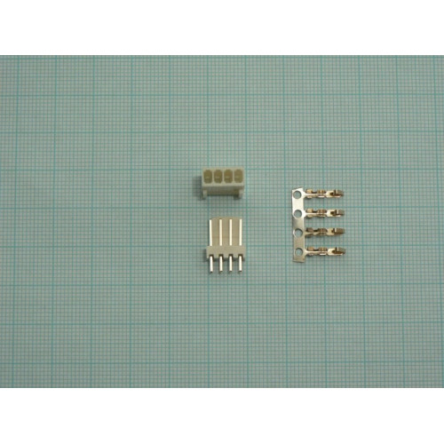 Konektor se zámkem na kabel + do DPS, 4 kontakty, rozteč 2,54mm. 4x kontakty zlacené v páse