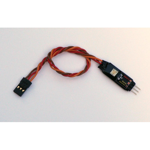 INV3 obsahuje trimr pro dostavení středové polohy v rozsahu +/- 15° standardní výchylky serva. Napájecí napětí jednotkou prochází. Rozsah napájecího napětí je od 3,0 do 12,0 V. Úroveň řidicího signálu nesmí překročit 5V a nesmí být vyšší než napájecí napětí na konektoru Rx. Minimální výšku signálu na vstupu jednotky a úroveň výstupního signálu v závislosti na napájecím napětí je uveden v návodu v grafu jako křivky MIN INP a OUT. Pro správnou funkci se úroveň signálu na vstupu musí pohybovat mezi těmito křivkami. Tuto podmínku splňuje většina RC souprav na trhu. INV3 zpracuje vstupní impulzy šířky 0,45 až 3 ms. Šířka výstupního impulzu je zrcadlově otočena okolo osy 1,5 ms, tedy např. vstupní impulz 1 ms vytvoří výstupní pulz 2 ms a naopak. Vstupní impulzy kratší než 0,85 ms generují výstupní impulz 2,15 ms. Vstupní impulzy delší než 2,15 ms generují výstupní pulz délky 0,85 ms.